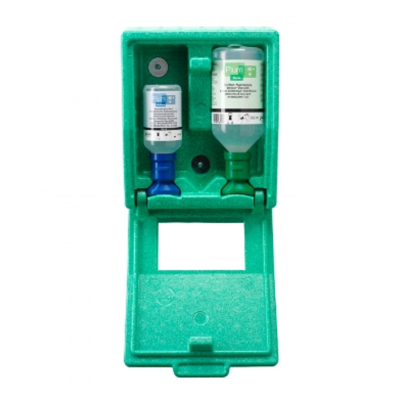 Bei einer Vielzahl von Chemieunfällen sind die Augen betroffen. Bei einem Augenunfall sind die ersten Sekunden die wichtigsten. Eine Augen-Notfallstation mit einer sterilen Phosphatlösung und Natriumchloridlösung gegen Säuren oder Alkalien sowie Fremdkörper, welche in das Auge gelangen können, sollte somit auf keinen Fall fehlen.